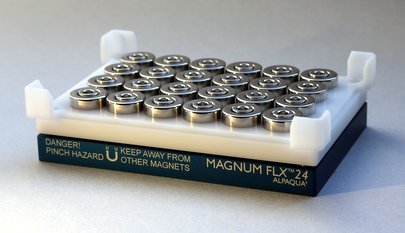 Alpaqua可提供一系列24-、96-和384-孔磁力板,可依据样品量和粘度选取不同类型磁力板。磁力板采用钕铁硼(NdFeB)磁铁,拥有不同磁力强度和特有的弹簧缓冲技术,促进磁珠的吸附,可完全去除悬浮液和洗脱液。整条生产线均符合SBS标准,与大部分液体处理器兼容。